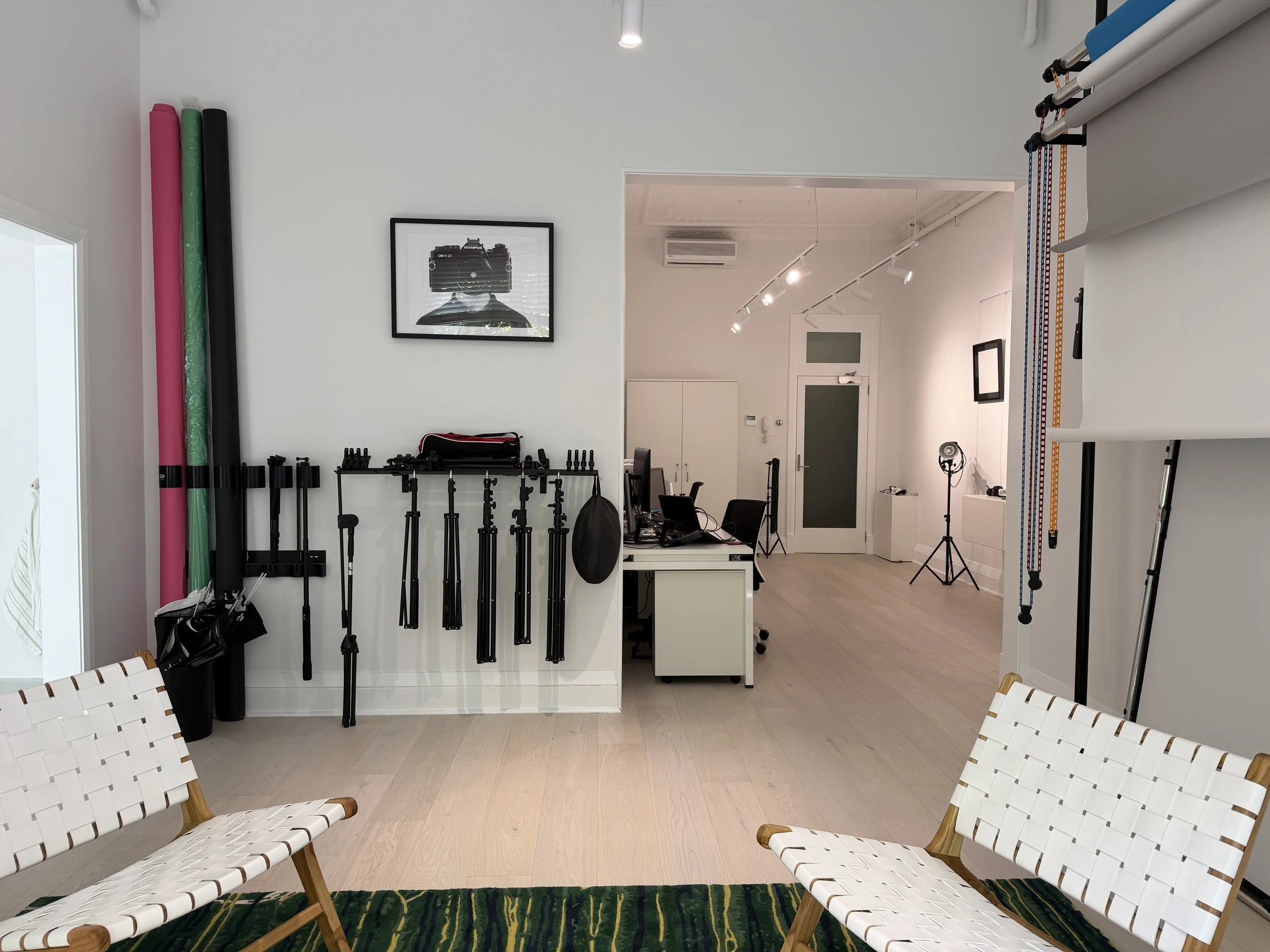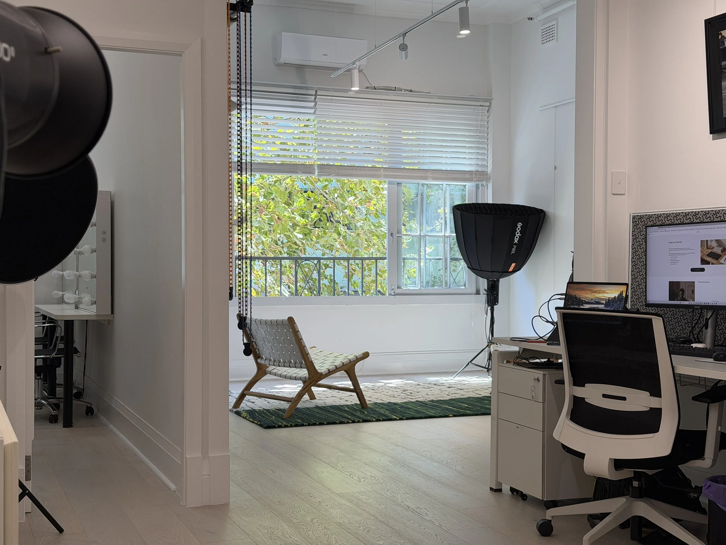 A flexible, intimate space ideal for portraits, product shoots, and small creative sessions.